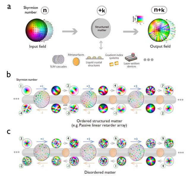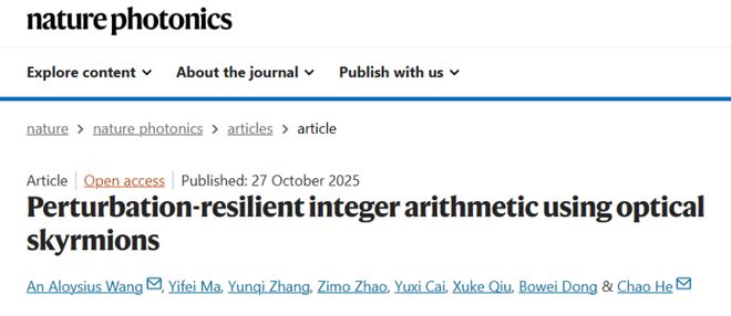 在近期发表于 Nature Photonics 的一项研究中,该团队开创了一种全新的高维光操控框架:信息的基本载体不再是二进制的 0 和 1,而是理论上可取任意整数的拓扑荷。具体而言,他们利用光的一种特殊拓扑结构——光学斯格明子(Optical skyrmion),使光“直接像数字信号那样”实现了抗扰动、高信息密度的逻辑运算。
