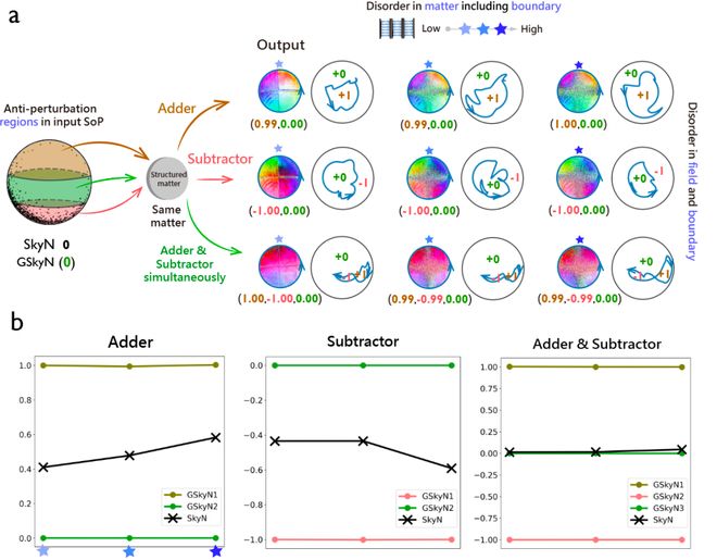特别值得关注的是,由于光与物质之间的对偶性,光学斯格明子加法器对工业制造要求极低,只需把特定边界处引入物质端即可保证计算的稳定性。并且,即使在材料属性存在显著波动的情况下,该体系仍能可靠地执行预定的运算任务。
